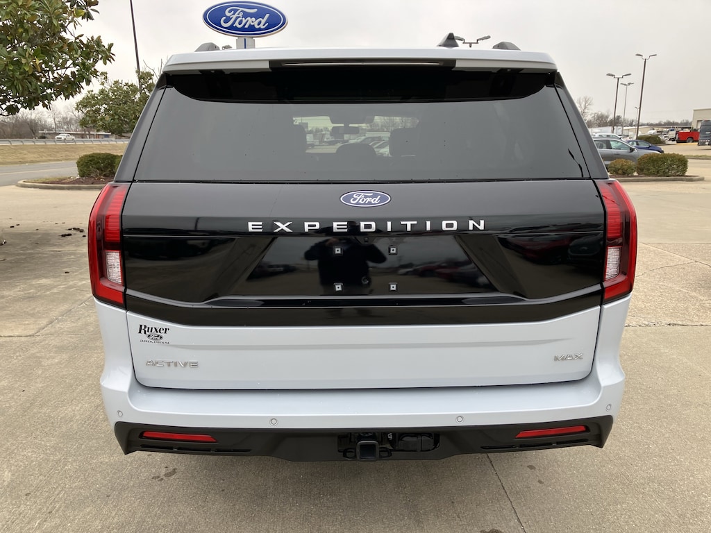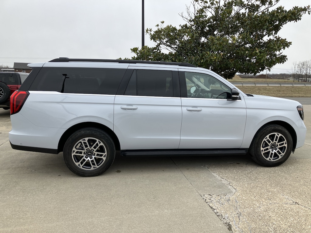 This well-equipped 2025 Expedition MAX Active 4x4 combines rugged capability with premium family-friendly features in a standout Space Silver Metallic exterior and Dark Gray ActiveX interior.